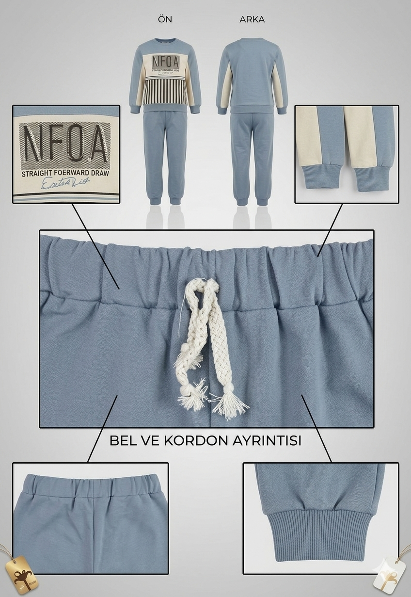 Erkek çocuklar için tasarlanmış bu eşofman takımı, şıklık ve rahatlığı bir arada sunar.
