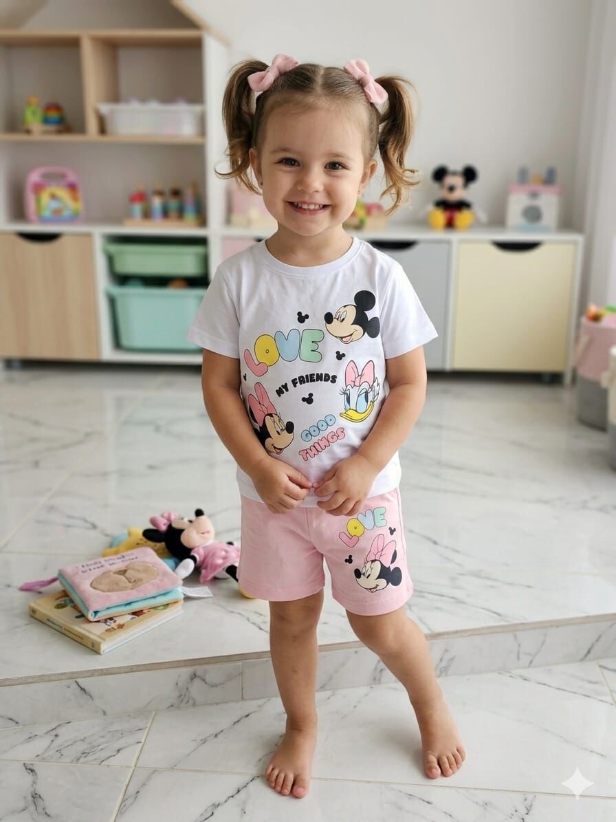 kız mickey baskılı şortlu takım