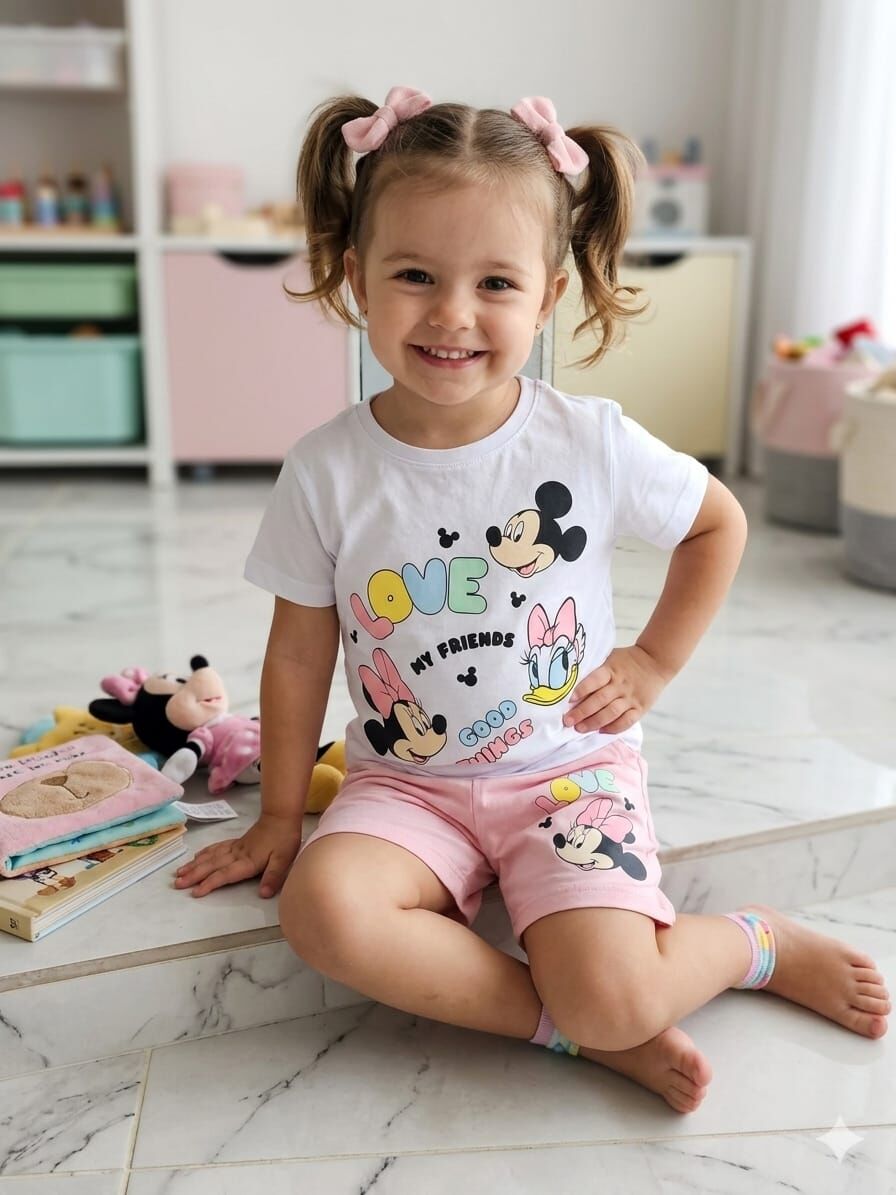 Pamuklu Mickey baskılı kız şortlu takım, çocuklar için rahat ve şık bir tercih sunar. Pamuklu kumaştan üretilen bu takım, cildin nefes almasını sağlayarak gün boyu konfor sağlar. kız çocuk mickey baskılı şortlu takım sevimli ve eğlenceli bir görünüm kazanan takım, kız çocuklarının tarzını tamamlar. kız çocuk mickey baskılı şortlu takım tasarımı sayesinde yaz aylarında ideal bir kullanım sunarken, kaliteli işçiliği uzun ömürlü kullanım sağlar. Bu pamuklu Mickey baskılı kız şortlu takım, hem evde hem dışarda rahatlıkla tercih edilebilecek şıklıkta bir üründür. Genç modasına uyumlu bu takım, çocukların hareket özgürlüğünü kısıtlamaz. kız mickey baskılı şortlu takım